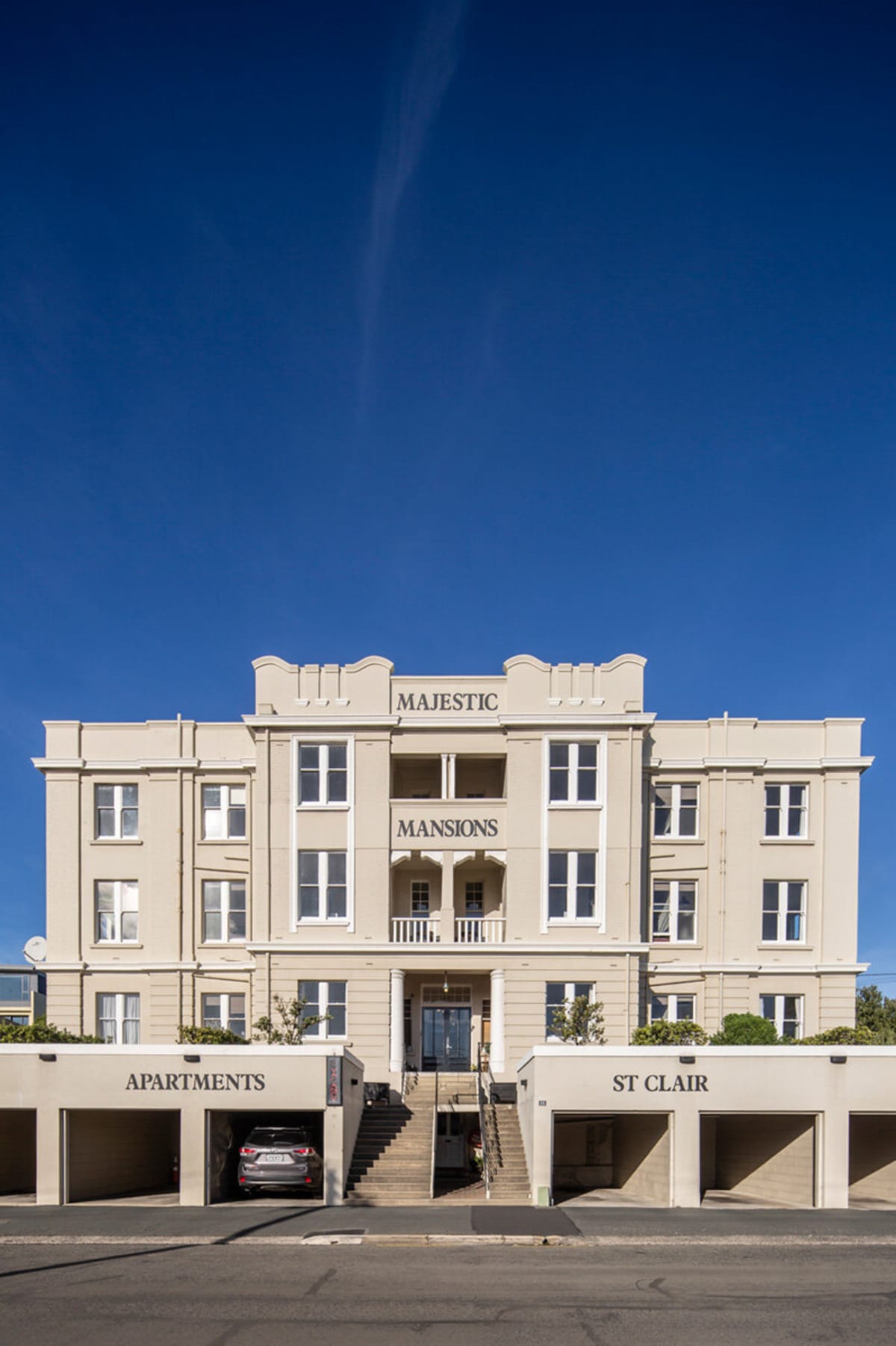 The Majestic Mansions - Apartments at St Clair, Dunedin's seaside boutique hotel is located on the St Clair Esplanade block, a stone’s throw from the local cafes, restaurants and bars. The location of Majestic Mansions offers visitors and guests a unique opportunity to experience a different part of Dunedin, taking in the surroundings of the beach and nearby amenities. The Mansions are a second home for both locals and travellers seeking a rich experience in one of Dunedin’s most idyllic neighbourhoods. The building was built in 1919 and has been recently refurbished by the new owners; Joff and Penny Riley. The renovation embraces the many stories its walls contain, as well as creating a relaxed, beach feel with a touch of luxury which has been easily achieved within the existing character of the building. Joff and Penny provide a stress free and relaxed stay for their guests within the quiet comforts of this stunning heritage building, catering for visitors from abroad, local staycation guests, corporate trips and business travellers looking for fully-equipped accommodation. Discounts can also be organised for group bookings and medium-term clientele are warmly welcomed. If you require further information at all, please don’t hesitate to get in touch. We await your arrival. – Penny & Joff Riley, Owners